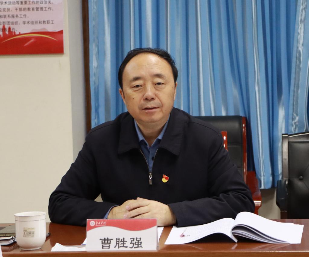 10日下午,校党委书记曹胜强深入马克思主义学院指导专题民主生活会。在认真聆听了领导班子成员的对照检查、批评和自我批评后,曹胜强对民主生活会给予充分肯定,认为会议准备充分,查摆剖析比较深刻,批评与自我批评态度诚恳,整改方向明确,会议达到了预期效果。同时指出,对照省委和学校党委要求,此次专题民主生活会在查摆问题、原因分析和整改措施等方面还存在一些问题,需要采取有力措施切实加以解决。