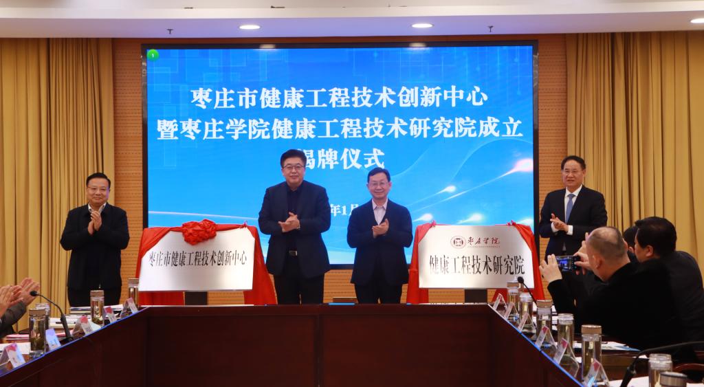 方国恩、周宗安,牛恩喜、李文喜分别为枣庄市健康工程技术创新中心和DB中国旗舰官方网站健康工程技术研究院揭牌。