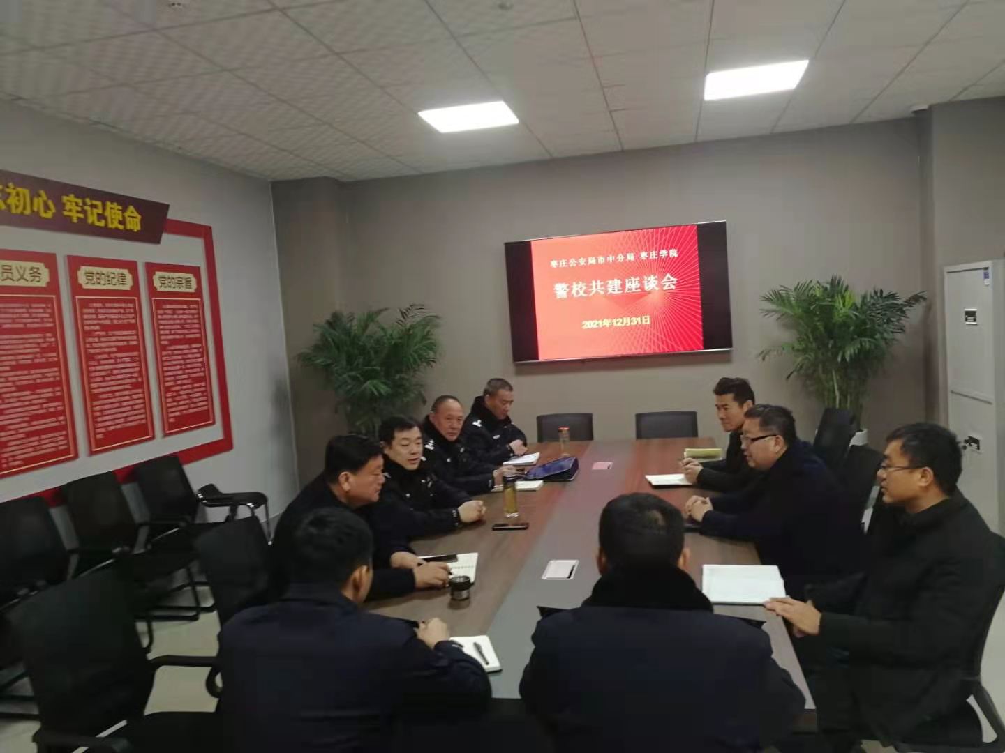 12月31日上午,枣庄市公安局市中分局党委副书记、政委刘成彬一行莅临我校市中校区开展警校共建活动。双方在市中公安渴口派出所驻校警务室会议室举行座谈会。校党委委员、副校长丰雷出席座谈会。