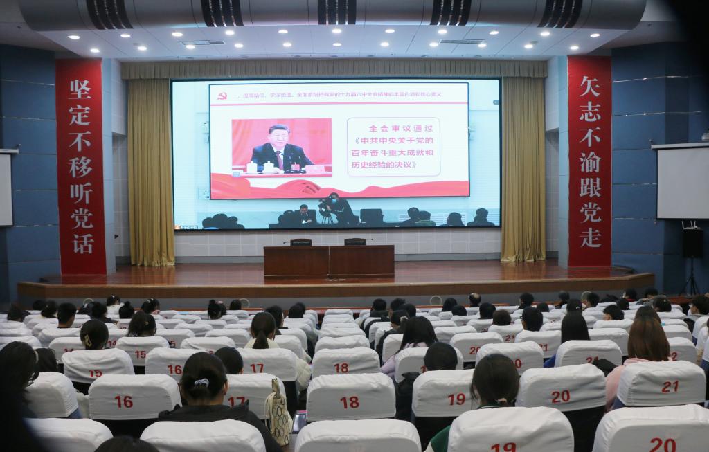 12月16日下午,枣庄市委书记、市人大常委会主任陈平莅临新城校区,为我校师生作党的十九届六中全会精神宣讲报告。校党委书记曹胜强主持报告会,我校新城校区处科级干部以及师生代表200余人在增信楼报告厅聆听报告。市中校区在综合楼学术报告厅设分会场,近300名师生以视频直播形式收听收看。