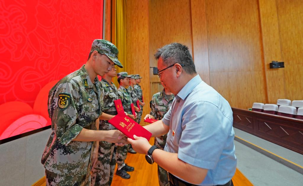 丰雷为军训教官代表颁发聘书。