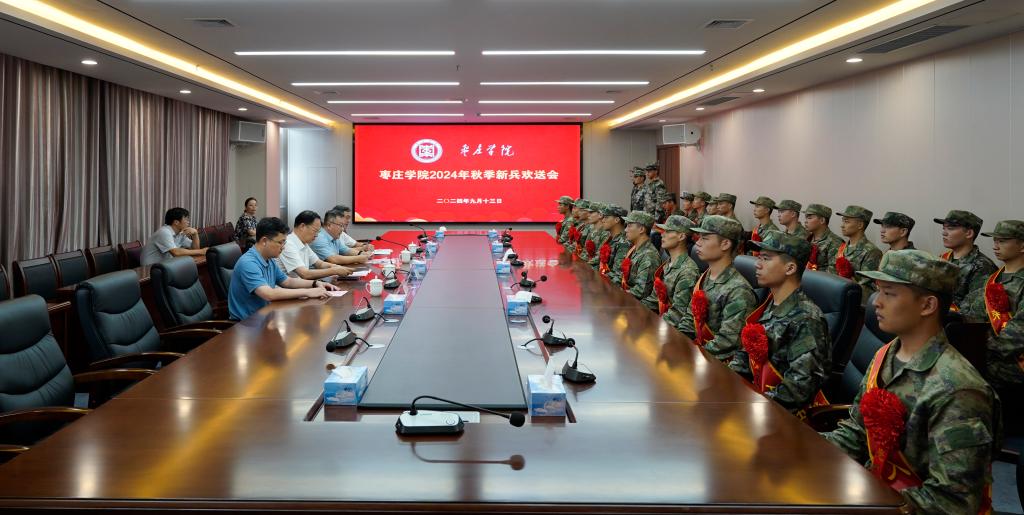 9月13日下午,我校在薛城校区明理楼519会议室举行2024年秋季新兵欢送会,为即将踏上征途、走进军营的27名新兵送行。校党委副书记、校长李文喜出席欢送会并讲话,党委委员、副校长丰雷主持会议。办公室、学生工作处(武装部)相关负责同志参加欢送会。