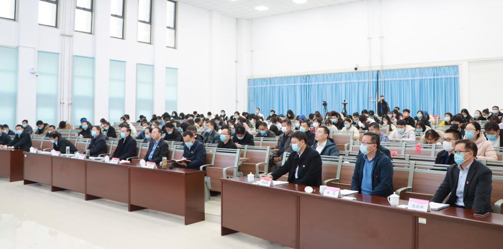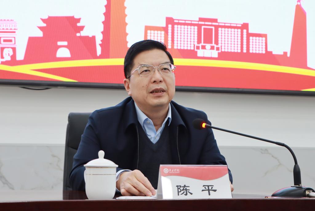 12月16日下午,枣庄市委书记、市人大常委会主任陈平莅临新城校区,为我校师生作党的十九届六中全会精神宣讲报告。校党委书记曹胜强主持报告会。市委常委、秘书长朱国伟,市委副秘书长黄浩仁,校领导李文喜、曾宪明、李目海、路绪剑、丰雷、安涛、张昌林,市委办公室全体党员,我校新城校区处科级干部以及师生代表在增信楼报告厅聆听报告。市中校区在综合楼报告厅设分会场,师生以视频直播形式收听收看。
