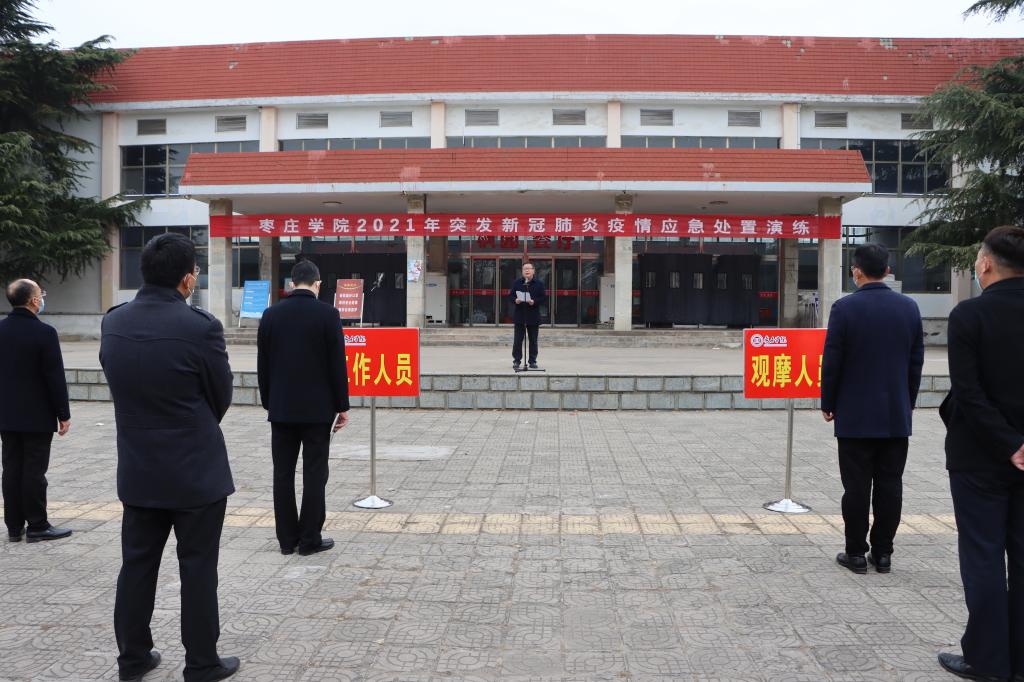 为有效应对新冠肺炎突发疫情,全面提升我校疫情防控组织协调和应急处置能力,根据上级有关要求,12月9日上午,我校在市中校区举行2021年冬季突发新冠肺炎疫情应急处置演练。校长李文喜出席并作动员讲话,校党委委员、副校长丰雷主持活动。市中区教体局以及齐村镇教育、卫生、疾控部门的领导专家应邀到场观摩指导。