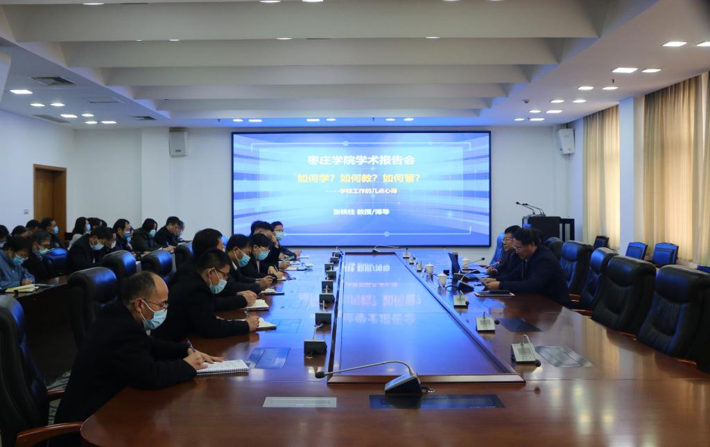 12月9日上午,山东理工大学学术委员会名誉主任、中国电池工业协会副理事长、俄罗斯自然科学院外籍院士张铁柱应邀在我校综合楼三楼会议室作了题为《如何学?如何教?如何管?》的学术报告。学校相关部门负责人、二级学院党政领导到会聆听报告。报告会由校长李文喜主持。