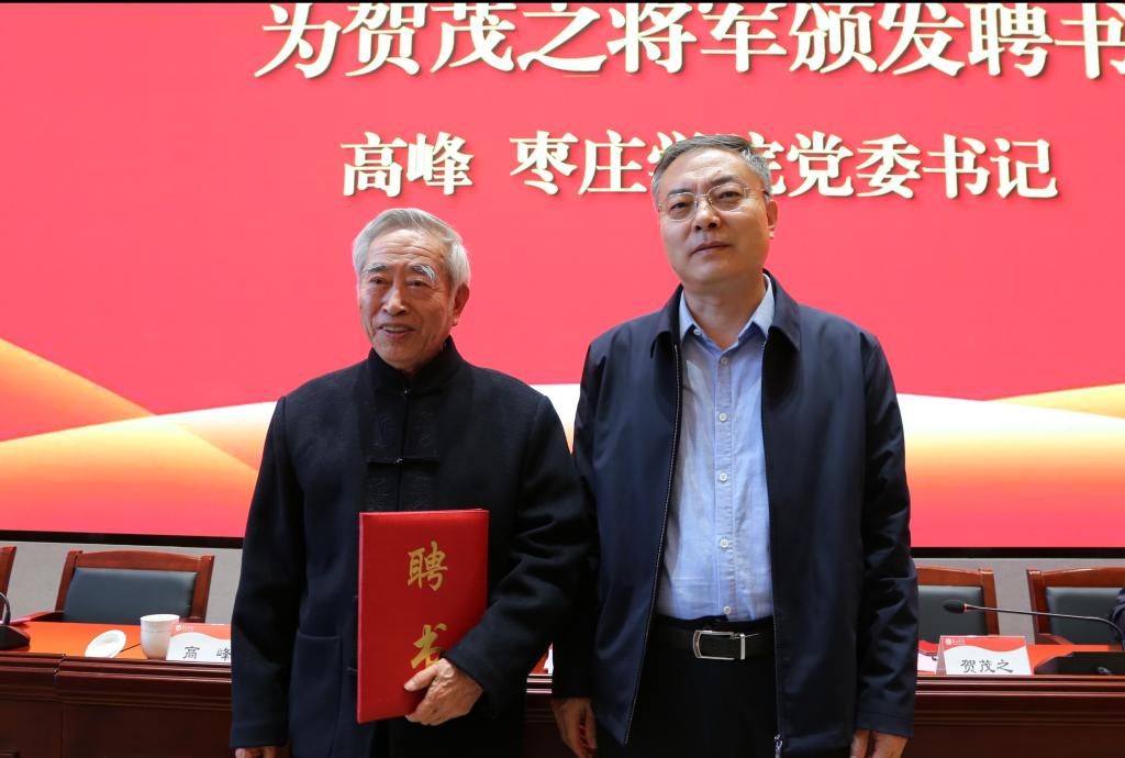 高峰为贺茂之将军颁发DB中国旗舰官方网站铁道游击队与抗战精神教育学院名誉院长聘任证书。