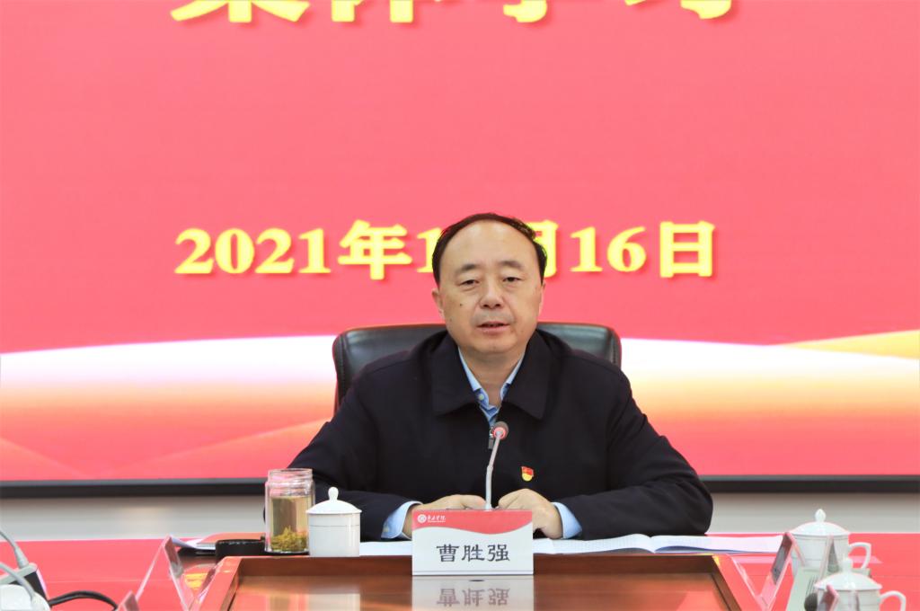 曹胜强最后强调,临近年末,学校各项任务艰巨繁重,各部门在全力抓好全会精神贯彻落实的同时,要紧盯年度目标任务,完善思路举措,狠抓工作落实,统筹推进党史学习教育,系统谋划明年各项任务,切实把学习贯彻全会精神的成效体现到具体工作上,以优异成绩迎接党的二十大召开。