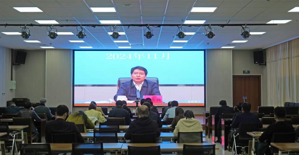 11月14日下午,省人民政府学位委员会办公室召开省学位委员会会议暨全省学位授权建设会议。省学位委员会主任、副省长邓云锋出席会议并讲话。省学位委员会副主任,省委教育工委常务副书记,省教育厅党组书记、厅长李明出席会议,省政府副秘书长刘斯杰主持会议。学校党委副书记、校长李文喜应邀在省教育厅一楼指挥中心主会场参加会议并作交流发言。学校在薛城校区明理楼113会议室设立视频分会场,校党委委员、副校长李目海,相关职能部门、学院及学位点负责人参加会议。