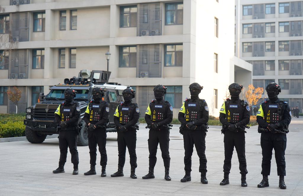 为加强学校安保力量,薛城区特警大队还组织对各学院负责安全工作的教师、学校安保、宿舍区及教学区楼管等相关人员进行了专业的反恐防暴知识培训。