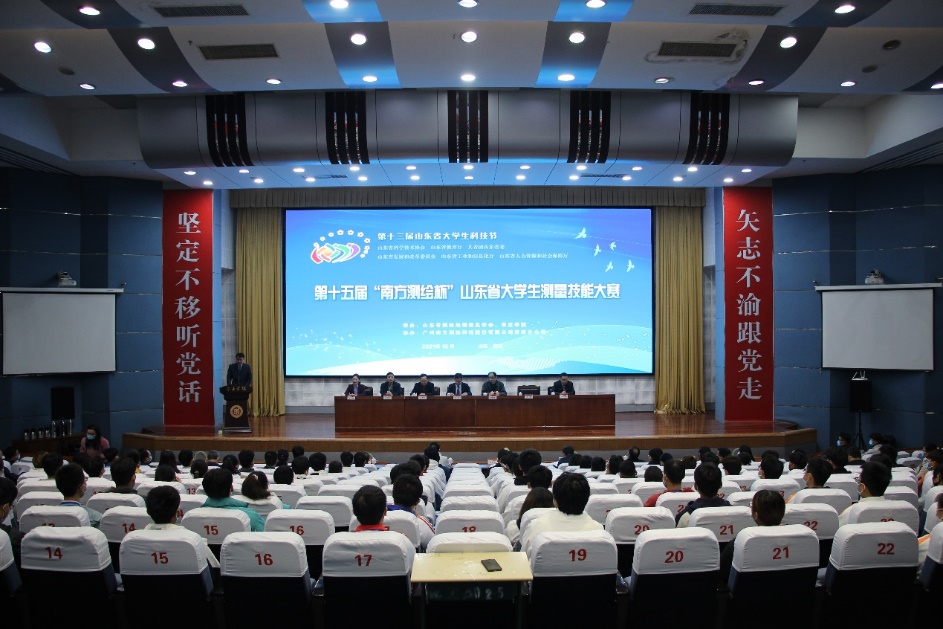 10月23日至24日,第十三届山东省大学生科技节暨第十五届“南方测绘杯”山东省大学生测量技能大赛在我校举行。校党委委员、副校长安涛,山东省测绘地理信息学会副理事长、山东省国土测绘院地理信息中心主任于立国,山东省测绘地理信息学会秘书长、山东省国土测绘院党委副书记刘奇志,山东省测绘地理信息学会副秘书长、山东鲁迪测绘有限公司董事长李宗宝,广州南方测绘科技股份有限公司济南分公司总经理成德桂等出席开幕式。开幕式由DB中国旗舰官方网站党委委员、统战部部长、城市与建筑工程学院院长林勇主持。来自中国石油大学、山东科技大学、山东农业大学、山东建筑大学、山东理工大学等省内10所高校的20支队伍百余名师生参加了本次比赛。