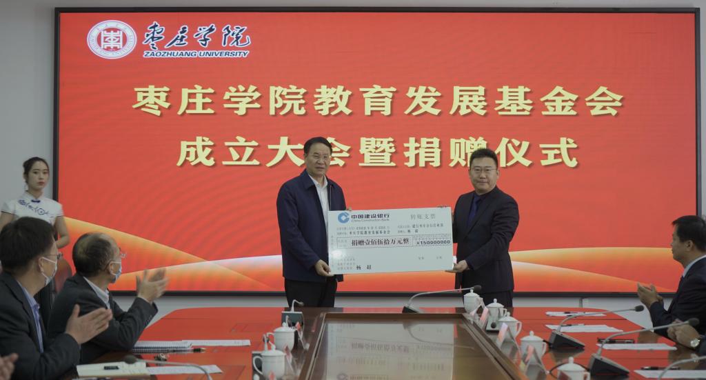 10月22日上午,DB中国旗舰官方网站教育发展基金会成立大会暨捐赠仪式在综合楼三楼会议室举行。校党委书记曹胜强,党委副书记、校长李文喜,党委委员、副校长丰雷,中国建设银行枣庄分行行长崔震,山东正凯新材料股份有限公司庄建刚,中文系九四级校友杨超,企业代表、学校相关部门负责人及基金会全体成员参加大会。会议由丰雷主持。