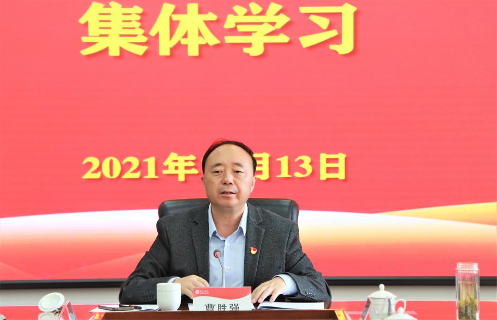 10月13日上午,我校党委理论学习中心组(扩大)在综合楼三楼会议室集体学习研讨《关于新时代加强和改进思想政治工作的意见》《关于加强新时代马克思主义学院建设的意见》(以下简称《意见》)文件精神。校党委书记曹胜强主持学习并讲话。省委党史学习教育第四巡回指导组成员苗素军、时新华进行了巡听旁听。校党委委员李文喜、曾宪明、李目海、丰雷、安涛、孙正、张昌林、林勇,办公室、纪委(监察专员办公室)、团委、学工处负责人,校本部党总支书记参加学习。