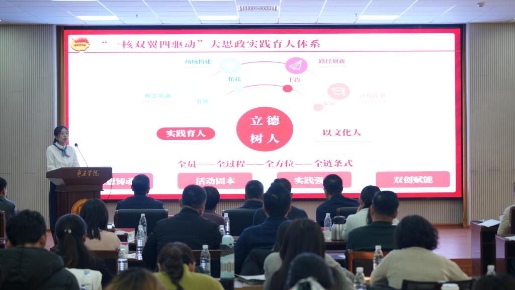 为切实加强基层团组织建设,全面落实从严治团的工作要求,根据团中央《基层团组织书记述职评议考核暂行办法》,1月7日下午,我校“向党述职 向青年报告”2024年基层团组织书记述职评议会在薛城校区明理楼113会议室召开,校党委副书记丰雷出席会议并讲话。组织部、宣传部、学生工作处等部门负责同志及各学院党委副书记、团委负责同志,各学院学生会学生代表100余人参加会议。会议由校团委书记袁心主持。
