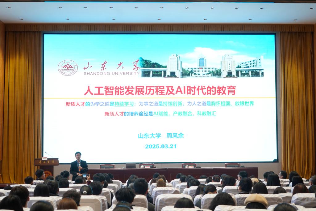 安涛在主持时指出,教育是立国之本,人工智能则是引领未来的核心驱动力,AI技术深度融入教育场景,不仅重塑了知识传授的方式,更深刻影响着人才培养的逻辑。从智慧课堂到个性化学习,从教育公平到终身发展,AI正在为教育变革注入无限可能。周教授的报告既有理论深度,又有实践指导意义,让大家对人工智能的发展有了更全面、更深刻的认识。