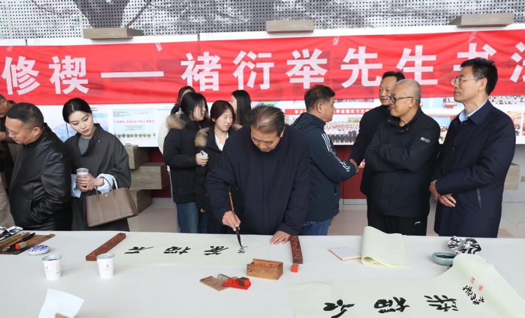 闫羲和、刘玉鼎分别致辞,对褚衍举先生在书法艺术领域的卓越成就和对枣庄书法事业的贡献给予高度评价。开幕式结束后,与会领导、嘉宾合影留念,并一同参观了书法作品展。书法展现场还设置了书法创作区,褚衍举先生与书法家们现场挥毫泼墨,共同创作书法作品,展示书法艺术的魅力。