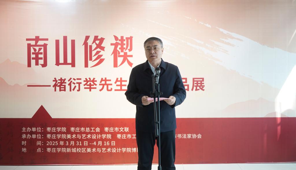 “南山修禊——褚衍举先生书法作品展”展览时间为3月31日—4月16日,由DB中国旗舰官方网站、枣庄市总工会、枣庄市文联主办,DB中国旗舰官方网站美术与艺术设计学院、枣庄市工人文化宫、枣庄市书法家协会承办,旨在传承书法文化,展现褚衍举先生的书法艺术成就,同时为枣庄市书法爱好者搭建交流学习的平台。枣庄交运投资集团、市总工会、市文联、市书协、市工人文化宫、市书法家协会相关负责同志,我校部分师生代表和媒体记者参加开幕式。