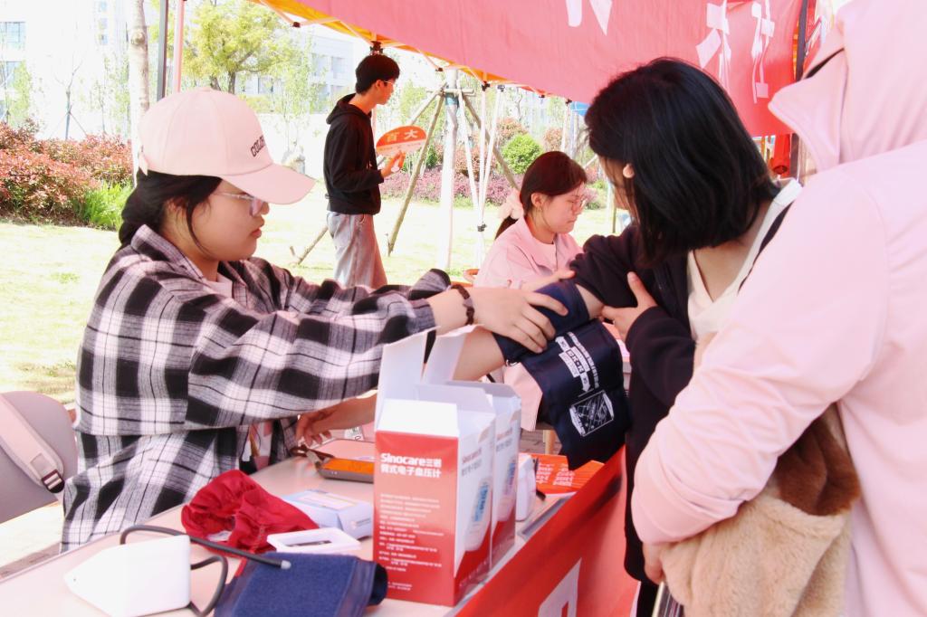 活动现场,校领导先后深入多个学生社团观看成果展示。在社团风采展区,思想政治类、文化体育类、创新创业类、志愿公益类、学术科技类等六类社团通过创意展示、随机表演、集章兑礼、互动体验等多元化形式,全景展现社团的发展成果与青春活力。文化自信红色宣讲团将VR技术与铁道游击队文化相结合开展沉浸式红色体验,墨子科技创新协会开展的“AI机器人挑战赛”吸引众多科技爱好者,红十字协会将活动现场打造为集宣传科普、志愿服务与无偿献血的“生命接力站”,活动累计采血百余人。创意集市设置“七彩主题”区域,红韵风采展示区、橙梦创意市集坊、金诚以待交易区、绿源二手宝物坊、青翼爱心捐赠站、蓝海权益守护港、紫笺心语留言廊涵盖文化创意、数字科技、智慧生活等众多板块。