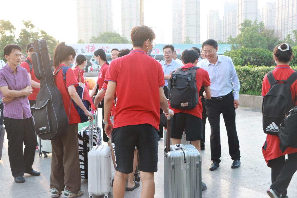 7月4日凌晨,我校2021年春季援疆实习支教团205名师生圆满完成各项任务从新疆载誉归来。校长李文喜、副校长安涛一行前往枣庄西站迎接实习支教师生。办公室、教务处、团委、学生工作处等部门负责人和支教学院负责人随同前往迎接。