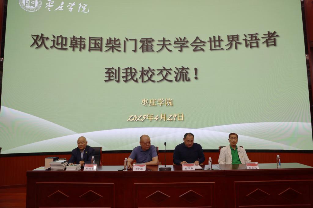 在薛城校区,考察团参加了中韩世界语座谈会,我校世界语专业师生参加座谈会。国际交流处副处长梁钰堃致欢迎辞,外国语学院副院长孙显云简要介绍了世界语专业的情况,孙明孝介绍了世界语博物馆的建馆历程和成果。
