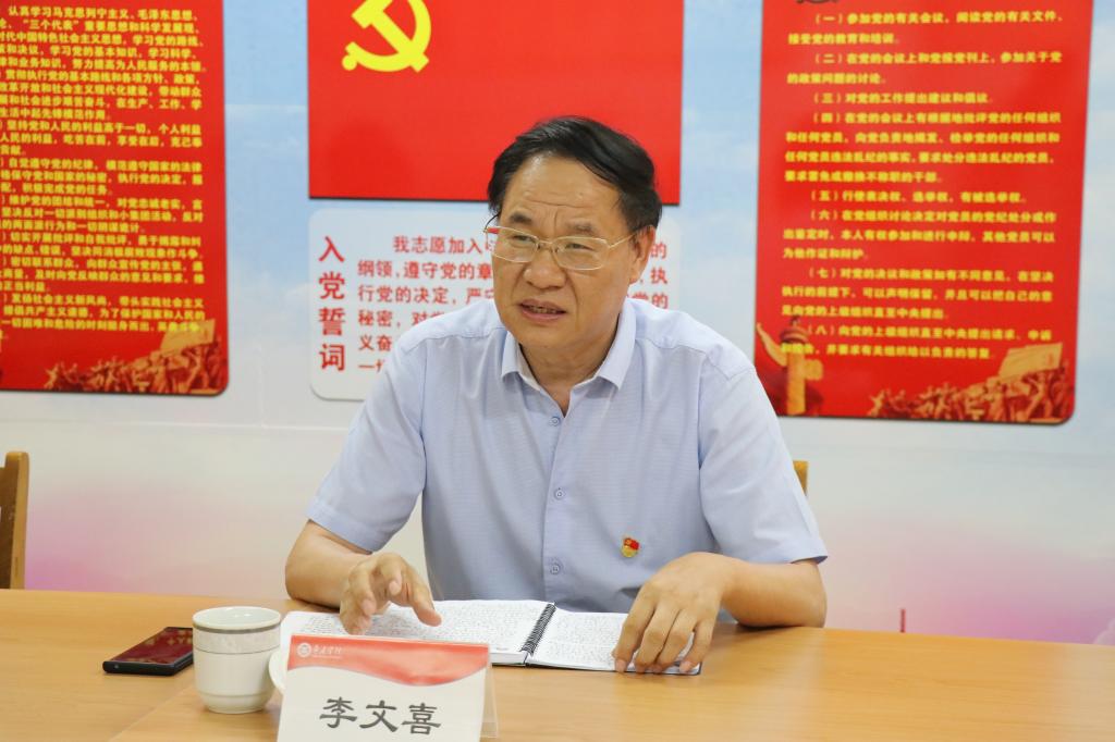 李文喜指出,为继续扎实推进党史学习教育,全体党员同志要努力做到以下三点:一是加强理论学习,坚定理想信念。加强理论学习是把牢理想信念总开关的金钥匙,是把握方向应变大事的法宝,是应对各种风险挑战的利器。理论上的成熟是一个政党成熟的标志也是一个党员干部成熟的标志。必须把理论学习作为基本内容、终身课题来抓,不断提高理论素养,始终保持理论清醒和政治坚定。二是牢记初心使命,厚植为民情怀。全心全意为人民服务是党的根本宗旨,党的根基在人民、血脉在人民、力量在人民。作为党员,我们要扎根基层沃土,视师生为家人,心系师生,服务师生。作为高校教师,要坚持立德树人根本任务,坚守为党育人、为国育才的初心使命,努力培养能够担当民族复兴大任的时代新人。三是坚持光荣革命传统,推动学校高质量发展。中国共产党诞生以来,在长期的革命和建设中,形成了自己特有的优良传统和作风。其中,理论联系实际、密切联系群众、批评自我批评的三大作风是我们党的重要法宝,是中国共产党区别于其他政党的显著标志。在新的历史条件下,弘扬党的优良传统和作风,是扎根中国大地办大学,坚持发展主题的现实需要和必然要求。