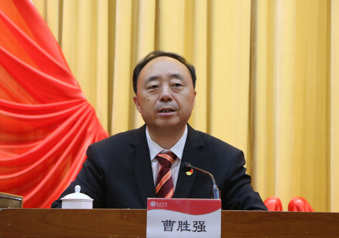 6月29日下午,我校庆祝中国共产党成立100周年表彰大会在综合楼报告厅召开。校领导曹胜强、李文喜、曾宪明、李目海、路绪剑、丰雷、安涛、孙正、张昌林、林勇出席大会。校党委书记曹胜强在大会上讲话。获得表彰的“两优一先”、入党积极分子和新发展党员代表参加大会。大会由校长李文喜主持。