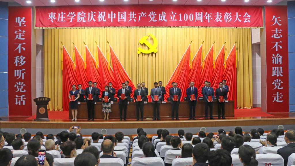 党委副书记曾宪明宣读了《关于表彰先进基层党组织、优秀党务工作者、优秀共产党员的决定》《关于表彰2020-2021年度思想政治工作先进集体、先进个人的决定》《关于表彰党史党建优秀科研成果的决定》。校领导共同为受表彰的集体和个人颁奖。