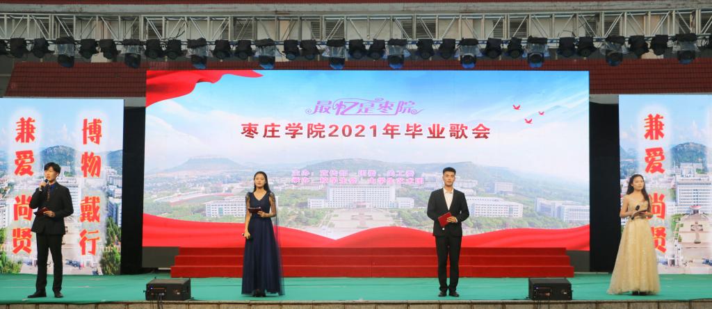 毕业歌会在饱含着对党无限热爱的《唱支山歌给党听》MV中拉开帷幕。歌会共分为“感党恩之情”“传枣院之魂”“筑青春之梦”三个篇章。《不忘初心》《我的中国心》《我和祖国一起出发》《强国一代有我在》等一首首歌曲深情地唱出了枣院学子的爱国之心,表达了青年一代感党恩、听党话、跟党走的决心和信心;情景剧《觉醒1919》《红船依旧,初心不改》《风雪长征路》和红色故事《青春心向党》带领现场观众回望建党百年苦难辉煌历程,激励新时代大学生赓续红色血脉、共筑伟大梦想;歌曲《祝你一路顺风》《送别》《毕业歌》等唱出了对毕业生的美好祝福,愿他们扬帆起航、前程似锦。晚会在全场合唱《没有共产党就没有新中国》的歌声中圆满落幕。