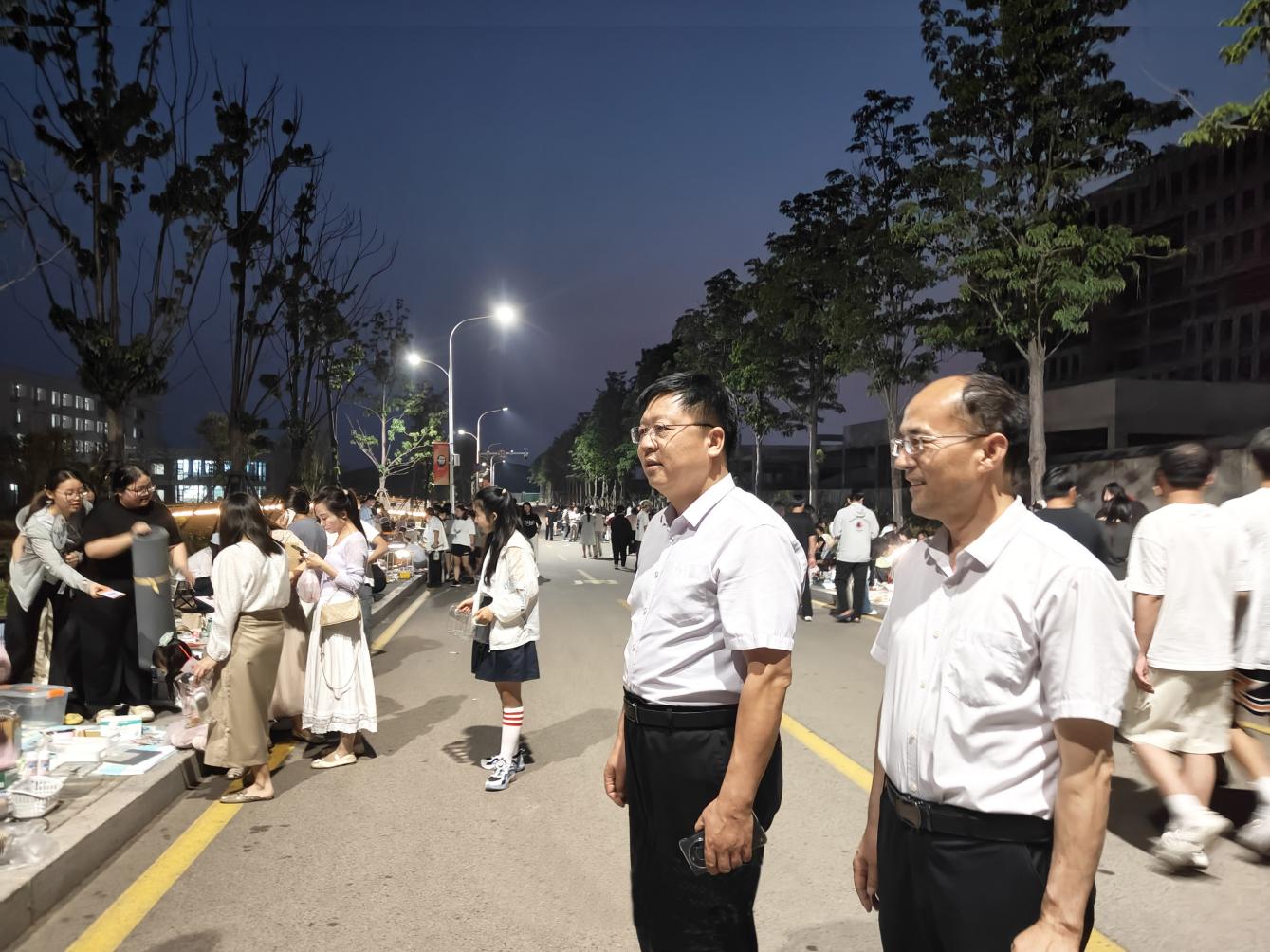 5月27日至28日,我校2025届“物传青春,忆续未来”跳蚤市场在薛城校区鲁班路及市中校区明德路同时进行。活动由校团委主办,经济与管理学院、光电工程学院联合协办。期间,校领导丰雷、李目海、袁俊现到场观看并亲切慰问毕业生。