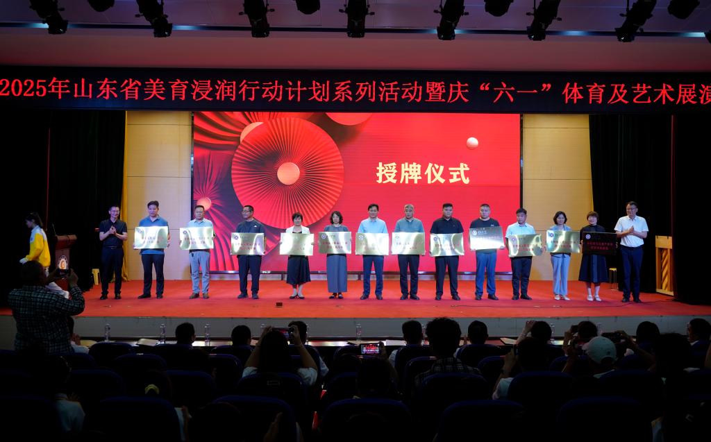 校地双方首先在台儿庄古城学校举办了台儿庄区美育优秀成果展、山东省美育浸润行动计划试点单位成果展、DB中国旗舰官方网站铸牢中华民族共同体意识作品展和“浸润共生 美育同行”庆“六一”文艺汇演。