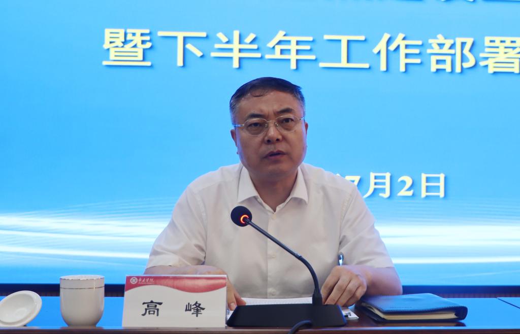 高峰作了题为《锚定目标强担当 聚力攻坚促突破 全力冲刺硕士点扩增总目标》的讲话,总结了我校上半年硕士点建设工作的进展情况,并对下半年的工作提出四点要求:一要紧跟政策导向、全力抢抓机遇,推动硕士点布局战略目标全面落实。要自我加压,全力在关键指标上实现突破,把握主动,提早完成学校的硕士点建设目标任务。二要对标攻坚目标、强化内涵建设,加速学位点指标突破步伐。要创新工作思路和方法,集中优势力量攻坚突破重难点问题,完成指标任务。三要推进强基提质、突出竞争优势,科学构建硕士点申报体系。聚焦高质量发展目标,主动提升内涵建设水平,力争与其他高校同类学位点形成比较优势和竞争力。四要主动开展工作、做好统筹优化,构建协同攻关新格局。各学院和相关部门要以高度的前瞻性和责任感主动开展工作,确保扩增工作不仅实现“量”的增长,更带来“质”的飞跃。
