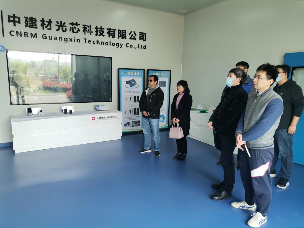考察组一行先后参观了中建材光芯科技有限公司展厅及工艺设计、工艺测试、产品生产等部门,近距离了解了中建材光芯科技有限公司的发展模式、研发产品及研究方向等情况。