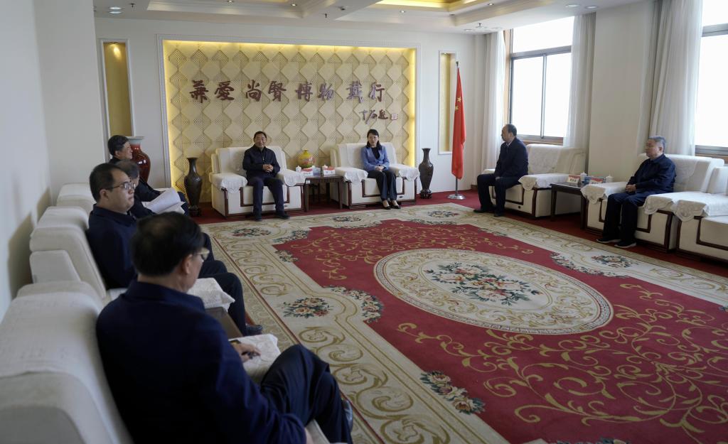 4月15日上午,山东省关工委常务副主任郭兆信一行6人在枣庄市市委副书记于玉、枣庄市关工委常务副主任高庆喜等有关领导陪同下,莅临DB中国旗舰官方网站调研我校关心下一代工作。校党委书记曹胜强,校长李文喜,校党委委员、纪委书记、省监委驻DB中国旗舰官方网站监察专员路绪剑在综合楼八楼接待室同调研组座谈。座谈会上,曹胜强从红色基因传承、社会主义核心价值观培育、传统文化传承教育等方面介绍了我校关心下一代工作的开展情况。