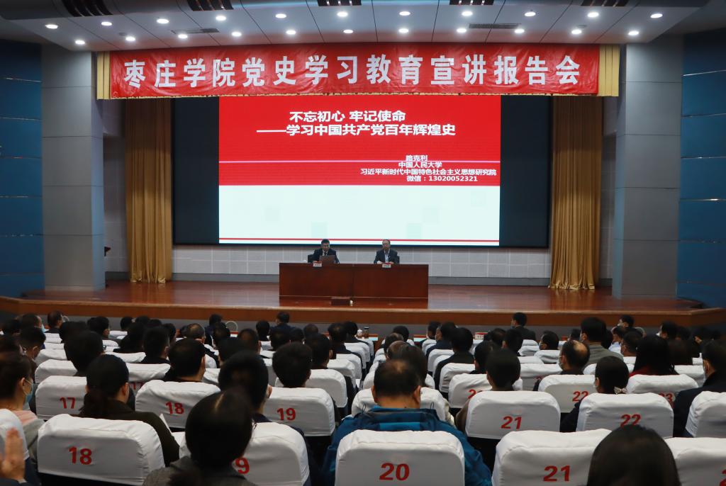 为丰富党史学习教育形式,营造浓厚的学习氛围,4月12日下午,我校在综合楼学术报告厅举办党史学习教育宣讲报告会,中国人民大学习近平新时代中国特色社会主义思想研究院研究员路克利博士应邀作报告。校领导曹胜强、李文喜、李目海、路绪剑、丰雷、安涛、孙正、张昌林、林勇,省委第四巡回指导组成员苗素军书记、时新华主任出席报告会。我校全体科级以上干部、部分师生代表共400余人到场聆听报告会,报告会由校党委书记曹胜强主持。