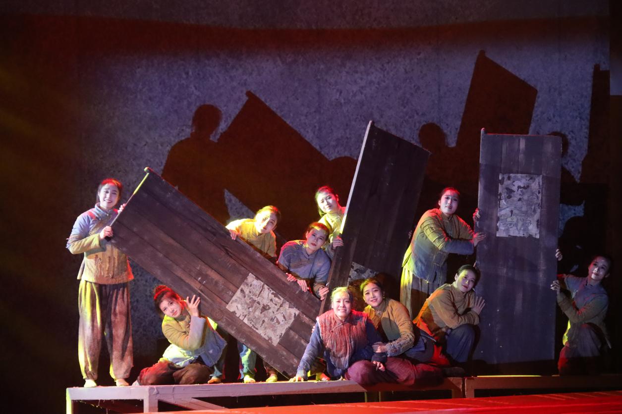 舞剧《沂蒙长风》以沂蒙革命老区的真实历史为根基,以刘永良一家人的感人故事为原型,巧妙融合李桂芳、梁怀玉等沂蒙英模的典型事迹,生动讲述了革命战争年代沂蒙人民义无反顾支援前线、舍生忘死奉献家国的动人篇章。作品紧扣“一门三烈士”“火线桥”等震撼人心的历史事件,以“推车支前”为主线,用灵动而富有力量的舞蹈语言,深刻诠释了“党群同心、军民情深、水乳交融、生死与共”的沂蒙精神内核。