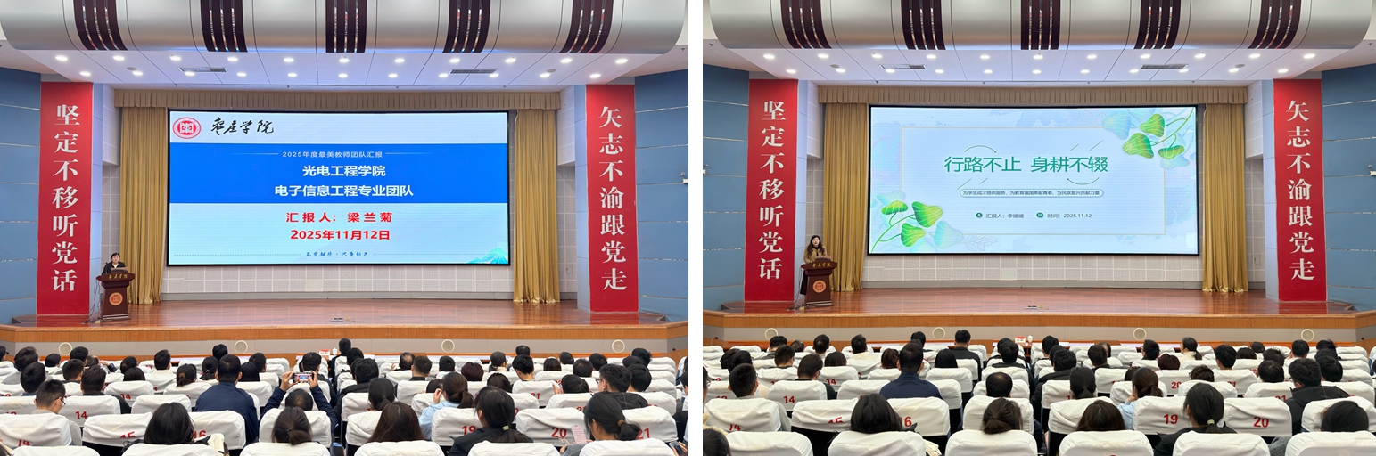 会上,我校2025年“最美教师”、2025年“最美教师团队”代表共12位老师依次上台,分享了他们的育人故事与心路历程。他们中,有关爱学生视如己出,用耐心与智慧点亮迷惘心灵,守护学生健康成长的中青年教师;有勇攀科研高峰,同时将最新研究成果反哺教学,引导学生探索前沿的学术骨干;还有默默耕耘在管理服务岗位,以细致入微的工作保障教学科研顺利运行的教辅人员。每一位宣讲人的故事角度不同,但都共同诠释了“最美教师”的深刻内涵——美在对教育事业的无限忠诚、美在对学生的无私大爱、美在对学术的执着追求、美在平凡岗位上的非凡坚守。他们用最朴实的语言、最真挚的情感,打动了在场的每一位听众,会场内多次响起热烈的掌声。