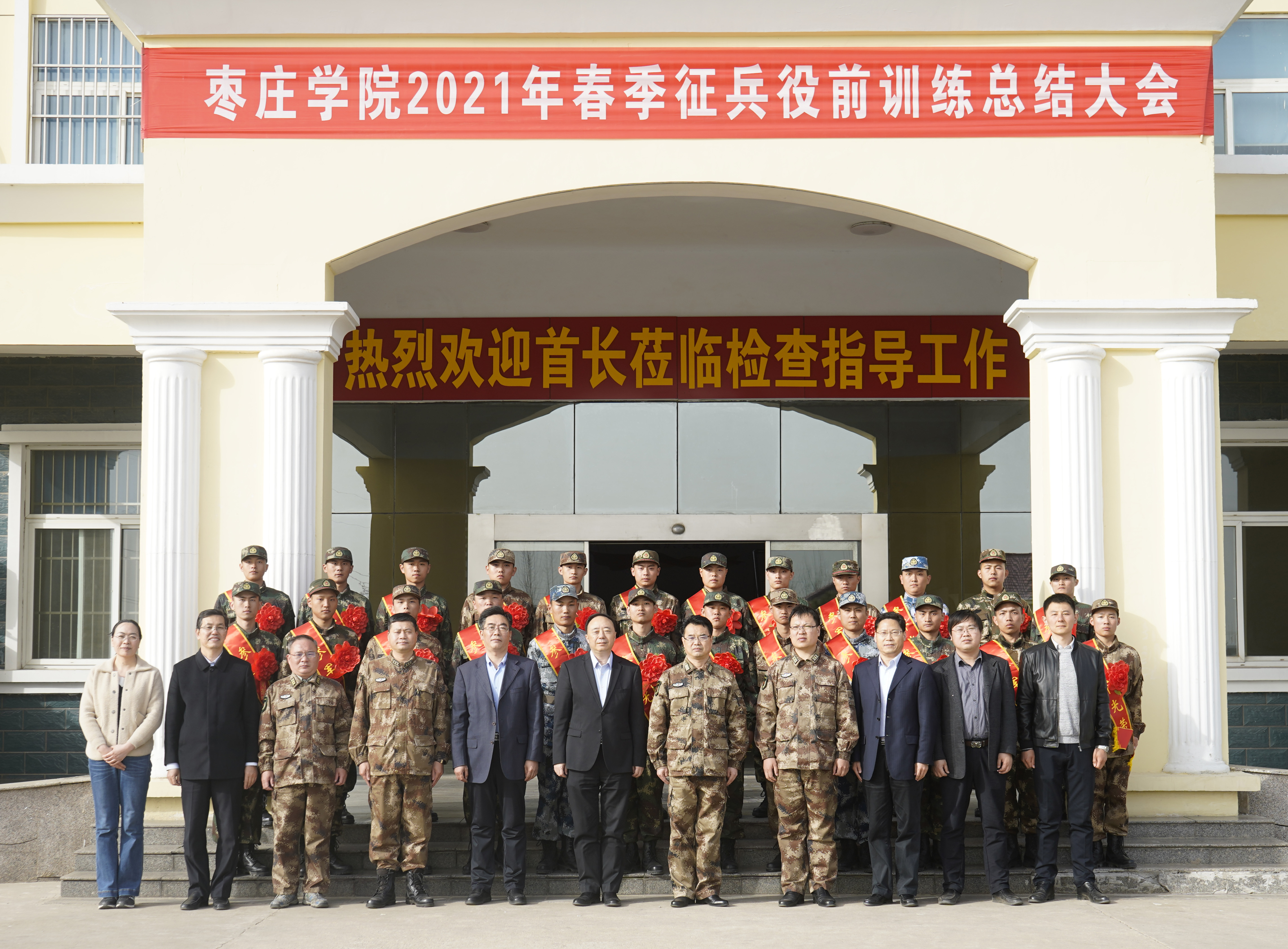 3月16日下午,DB中国旗舰官方网站2021年春季征兵役前训练总结大会在峄城区武装部召开,枣庄市军分区司令员王普照、校党委书记曹胜强出席会议并讲话,枣庄市军分区动员处,学校办公室、武装部负责同志参加了会议,会议由副校长安涛主持。