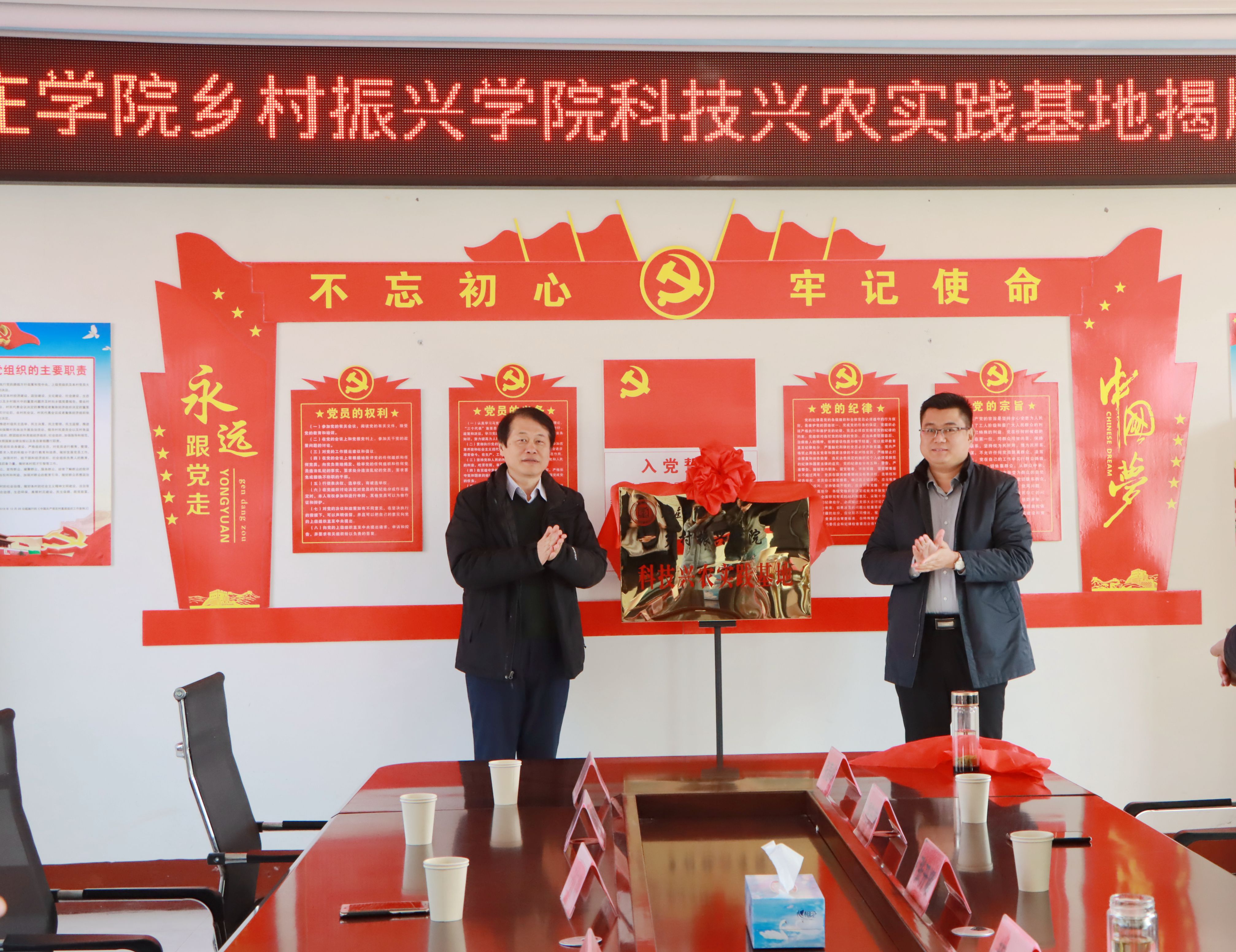 曾宪明与程亮共同为“DB中国旗舰官方网站乡村振兴学院科技兴农实践基地”揭牌。