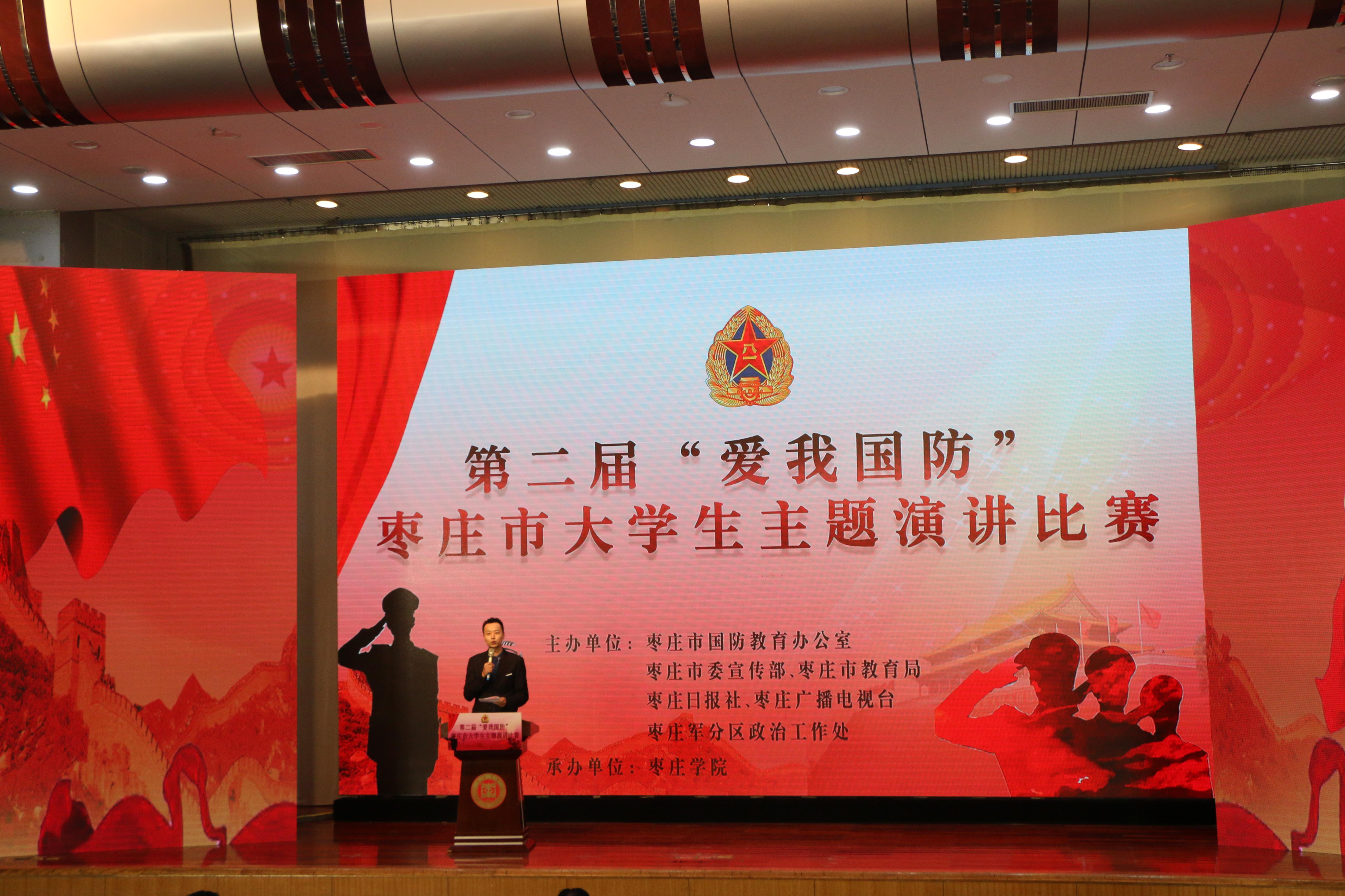 10月23日下午,第二届“爱我国防”枣庄市大学生主题演讲比赛在我校综合楼报告厅举行。本次比赛由枣庄市国防教育办公室、枣庄市委宣传部、枣庄市教育局、枣庄日报社、枣庄广播电视台、枣庄军分区政治工作处主办,DB中国旗舰官方网站承办。枣庄军分区司令王普照,校党委副书记曾宪明,校党委委员、宣传部部长张昌林,校党委委员、统战部部长林勇出席活动,学工处及主办单位相关部门负责人、部分学生代表参加活动。