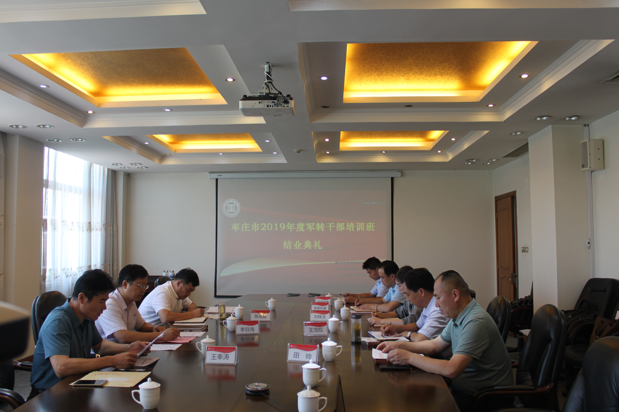 李目海对本期军转干部培训班的学习成效给予充分肯定,他指出,这次培训班是受枣庄市退役军人事务局委托,为广大转业干部继续保持和发扬军人的优良传统和过硬作风,尽快完成人生的转折,积极投身于现代化幸福枣庄建设事业,精心举办的一期集中培训。全体转业干部严格按照要求和培训日程安排,以饱满的学习热情、积极的学习态度、严肃的学习纪律,圆满完成了培训任务,达到了预期效果,这对于提升军转干部的适应能力和履职能力,进一步调动和激发广大军转干部干事创业的积极性、创造性,具有十分重要的意义。李目海对参训学员提出两点要求:一是再学习,再深化。通过两周的集中培训学习,虽然达到了预期学习目标,但仅仅靠两周的集中学习培训是远远不够的,主要还是靠平时继续学习,丰富知识,增长才干。二是希望大家以本次培训为契机,在今后的工作生活中,以自身良好的修养和模范行为,去团结人、影响人、带动人,努力为枣庄的经济建设增砖添瓦,为军队和广大军转干部增光添彩。