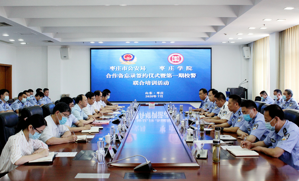 7月24日上午,枣庄市公安局与DB中国旗舰官方网站合作备忘录签约仪式暨第一期校警联合培训活动在我校综合楼三楼会议室举行,校党委书记曹胜强、副校长明清河,枣庄市公安局党委委员、副局长田传海出席活动,我校教务处、保卫处负责人,食品科学与制药工程学院院长、副院长及部分专任教师,食药环侦支队、森警支队支队长及支队全体同志,各分(市)局食药环侦大队负责同志,食药环侦及森警大队业务骨干参加活动。会议由食药环侦支队支队长张继军主持。