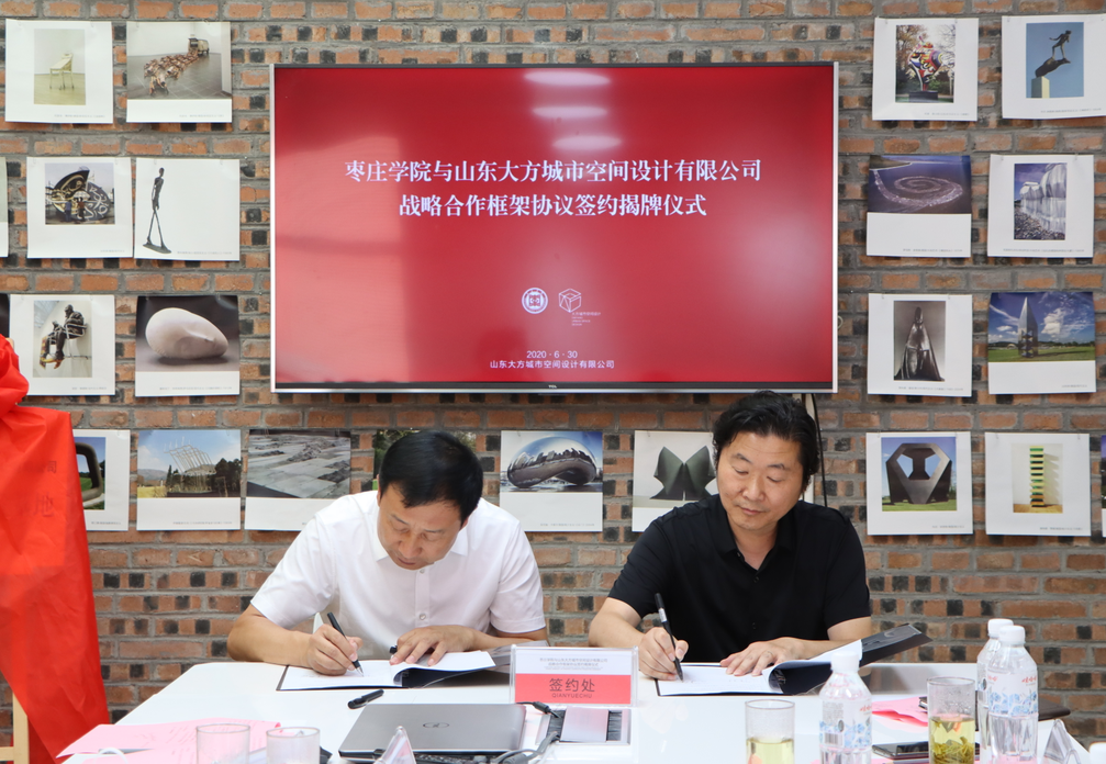 美术与艺术设计学院院长李鲁祥与山东大方城市空间设计有限公司总经理朱林签订“文化创意产业校企联盟”合作协议。