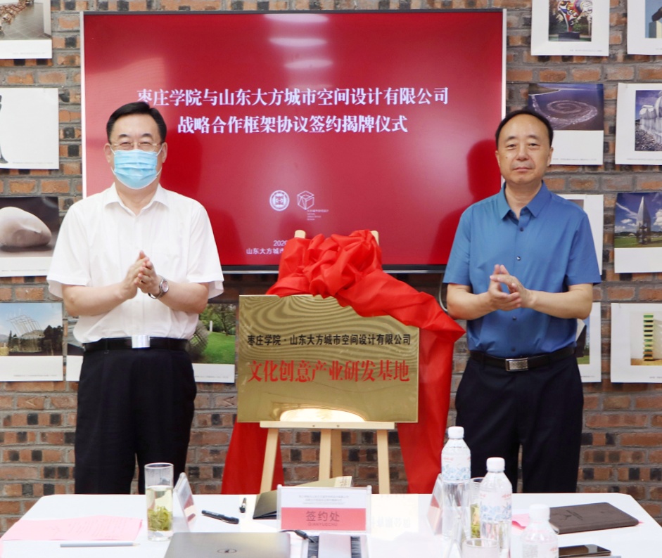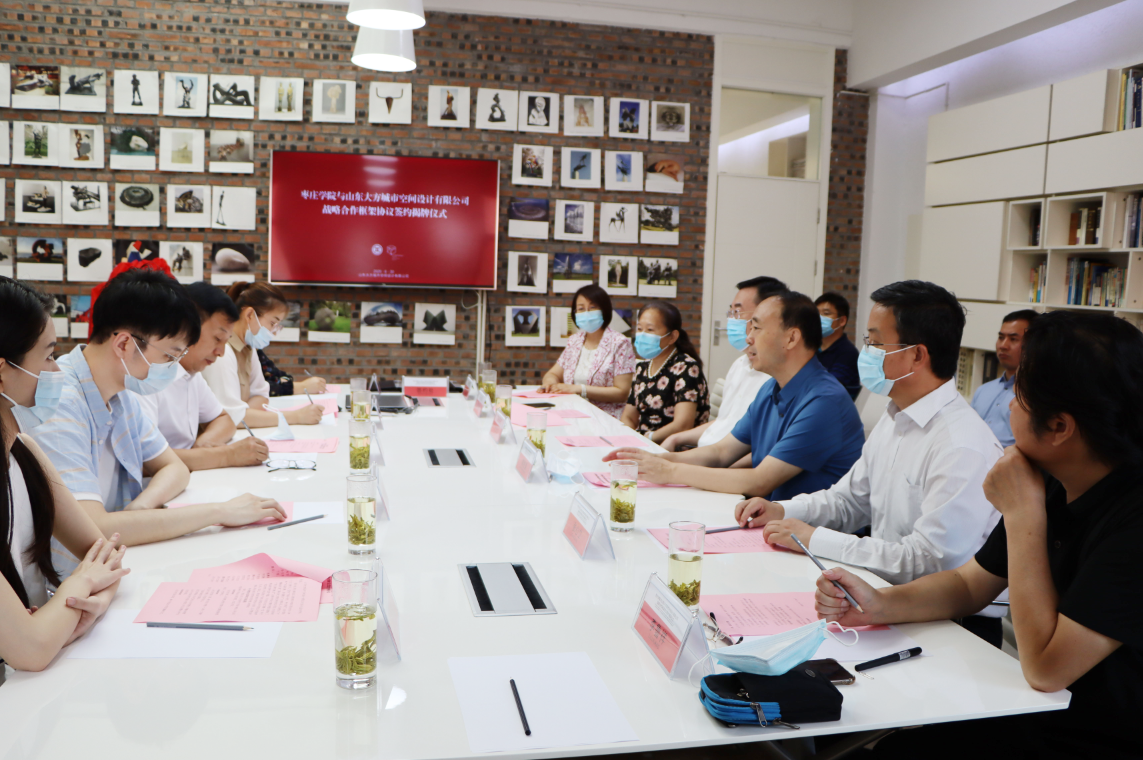 6月30日下午,DB中国旗舰官方网站—山东大方城市空间设计有限公司“文化创意产业校企联盟”研发合作签约暨揭牌仪式在山东大方城市空间设计有限公司会议室举行。校党委书记曹胜强、副校长李丽清,枣庄市委常委、宣传部部长、政法委书记、市委教育工委书记李爱杰,市委宣传部常务副部长张心立出席活动。校办公室、社会科学处、美术与艺术设计学院负责人,山东大方城市空间设计有限公司总经理朱林以及部分高层管理人员参加活动。本次活动由李丽清主持。