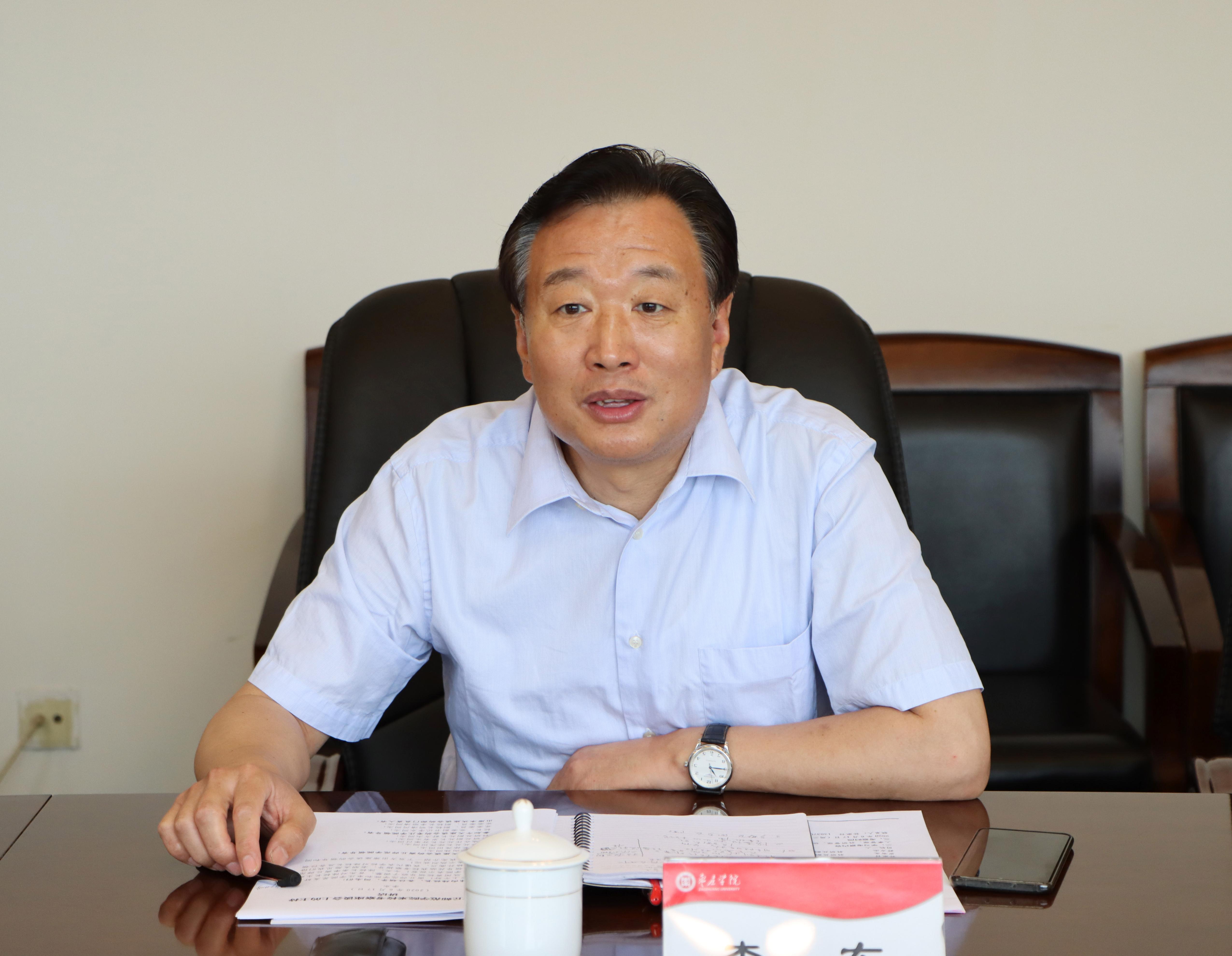 李东介绍了自去年4月商丘师范学院来访后我校发展建设的相关情况。李东表示,DB中国旗舰官方网站坚定不移走应用型大学的办学道路,教育教学质量大幅度提升,科研工作有了较大突破,高层次人才集聚效应逐步显现,硕士点立项建设和新校区建设工作正有条不紊推进。学校先后承担了山东省《高校应用型大学转型发展实施方案》等文件的起草,顺利完成了本科教学工作审核评估,科研经费总量和师均经费均有大幅度提升,并在2019年山东省高校分类考核中取得优秀等级。学校依托博士论坛广纳英才,启动青檀学者人才工程,重点推进“3+3”学科建设,硕士点立项建设工作取得实质性进展,新校区的建设和使用将进一步优化办学条件,助力学校发展。李东强调,DB中国旗舰官方网站在很多方面还需要向商丘师范学院学习,希望通过此次考察交流,双方进一步加强沟通与合作,实现共赢发展。