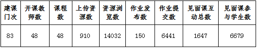 我校师生在雨课堂平台使用情况,根据大数据统计,由此查看本周教学班数量、教学活动总、开课总数、应到课人次、实际到课人次、课堂互动总数、平均到课率、习题互动总数,详情见下表: