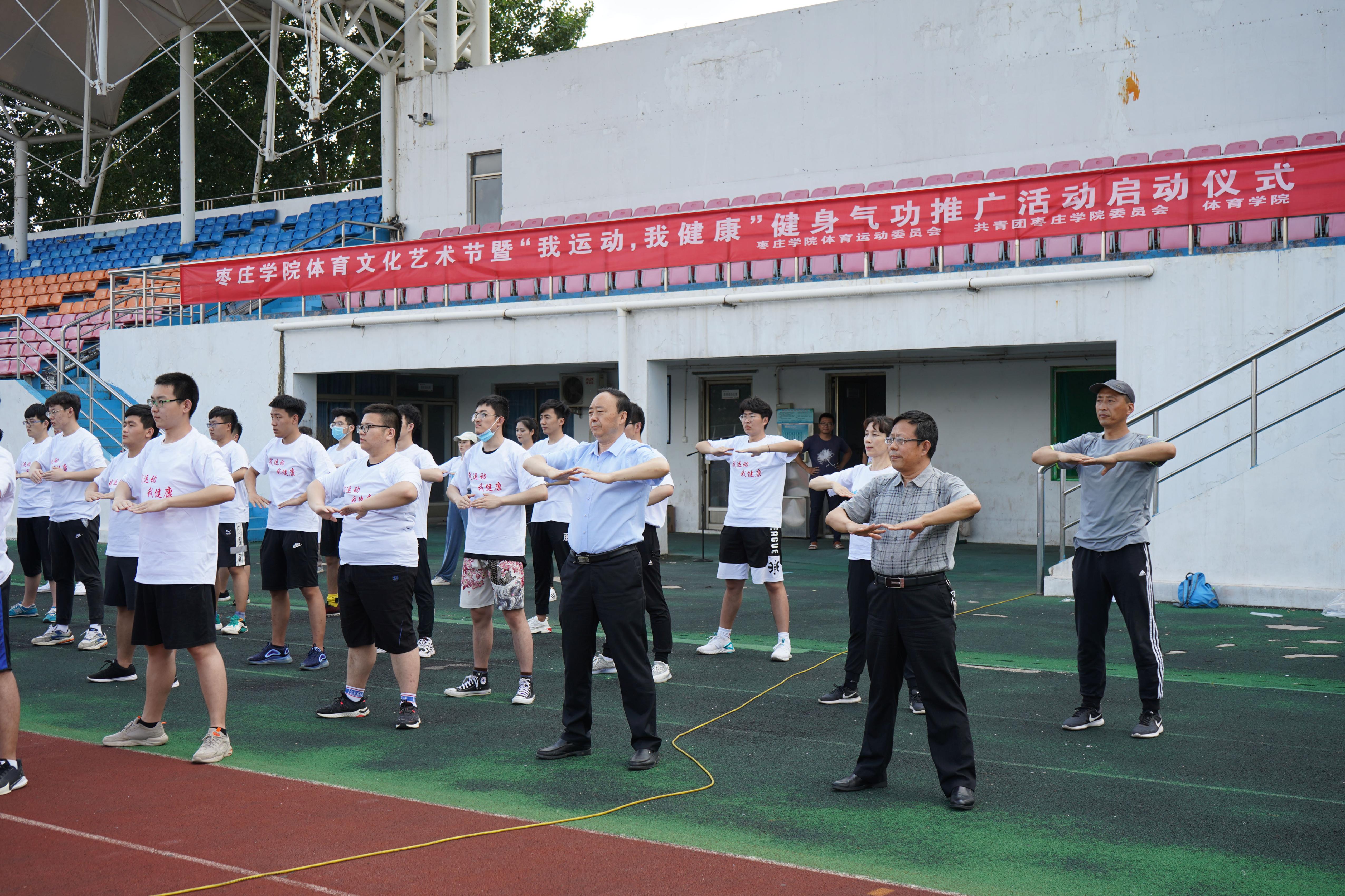 为认真贯彻落实习近平总书记关于统筹推进疫情防控和经济社会发展工作的系列讲话以及《山东省教育厅关于做好疫情防控常态化条件下学校体育工作的通知》精神,积极有序开展学校体育工作,6月10日下午,由DB中国旗舰官方网站体育运动委员会、团委和体育学院共同举办的体育文化艺术节暨“我运动,我健康”健身气功推广活动启动仪式在西田径场举行。校党委书记曹胜强、副校长明清河、团委及体育学院负责人出席了本次活动,来自各部门、二级学院的60余名师生参加活动。启动仪式由体育学院副院长李丽主持。
