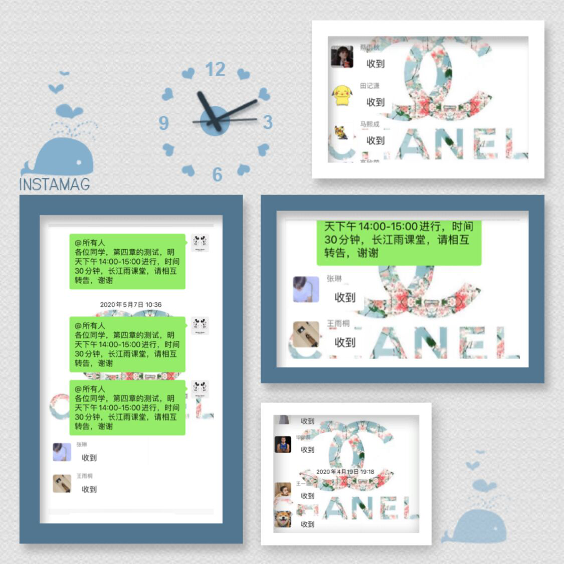课后反馈是检验学生学习效果的重要环节。刘晓蕾老师在授课时,配合长江雨课堂微信公众号,在每个章节结束后,对同学们进行限时测验,以检测学生的学习效果。为了让每位同学都可以顺利参加考试,教师会在前一天在微信群里下发考试时间及形式等内容的相关通知。