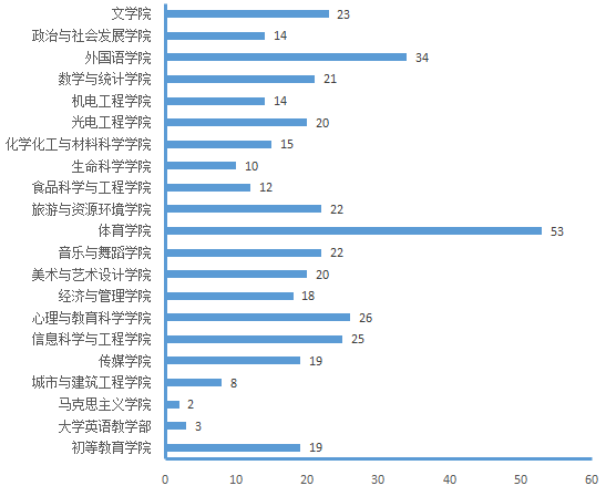 图4.各院(部)5月21日线上授课教师数(人次)分布图
