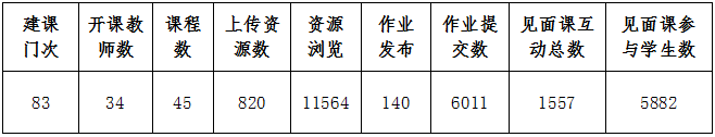 我校师生在雨课堂平台使用情况,根据大数据统计,由此查看本周教学班数量、教学活动总、开课总数、应到课人次、实际到课人次、课堂互动总数、平均到课率、习题互动总数,详情见下表: