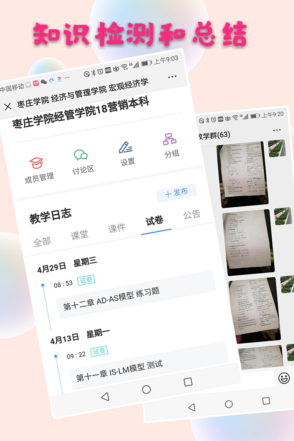 课后布置作业、要求学生整理笔记,进行知识点的总结。同时进行章节内容的测试,检验本章知识点的掌握情况,真正做到“停课不停学”!