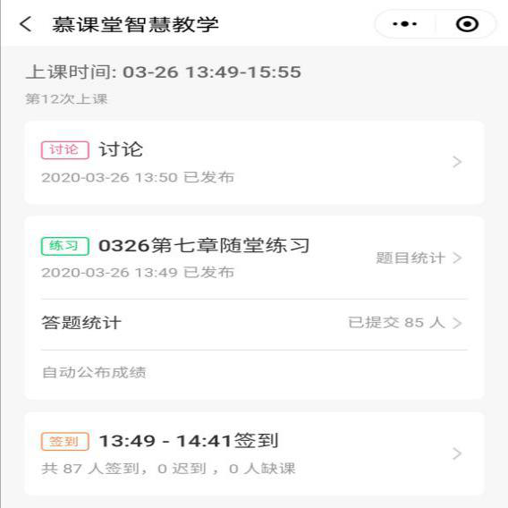 通过采用“中国大学MOOC+慕课堂+微信群”混合教学的方法,能够使不同学科背景的同学们尽快掌握本课程的相关知识点,让同学们在丰富多彩的学习中体会线上教学的乐趣,以达到预期的教学效果。